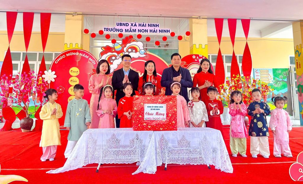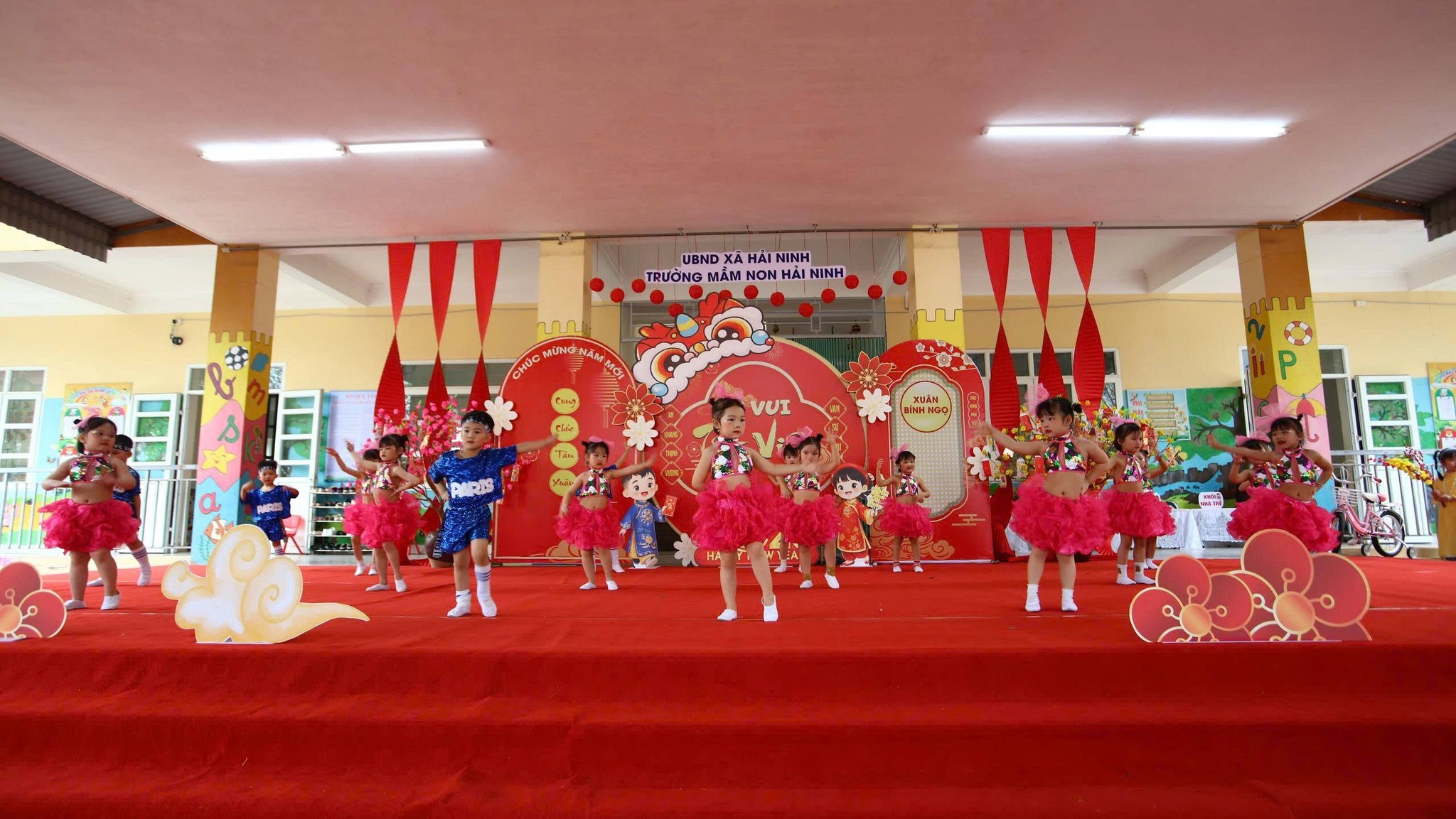 Hôm nay, sân trường Mầm non Hải Ninh như khoác lên mình chiếc áo xuân rực rỡ khi chương trình “Bé vui Tết Việt” được tổ chức trong không khí vui tươi, ấm áp và tràn ngập tiếng cười trẻ thơ.